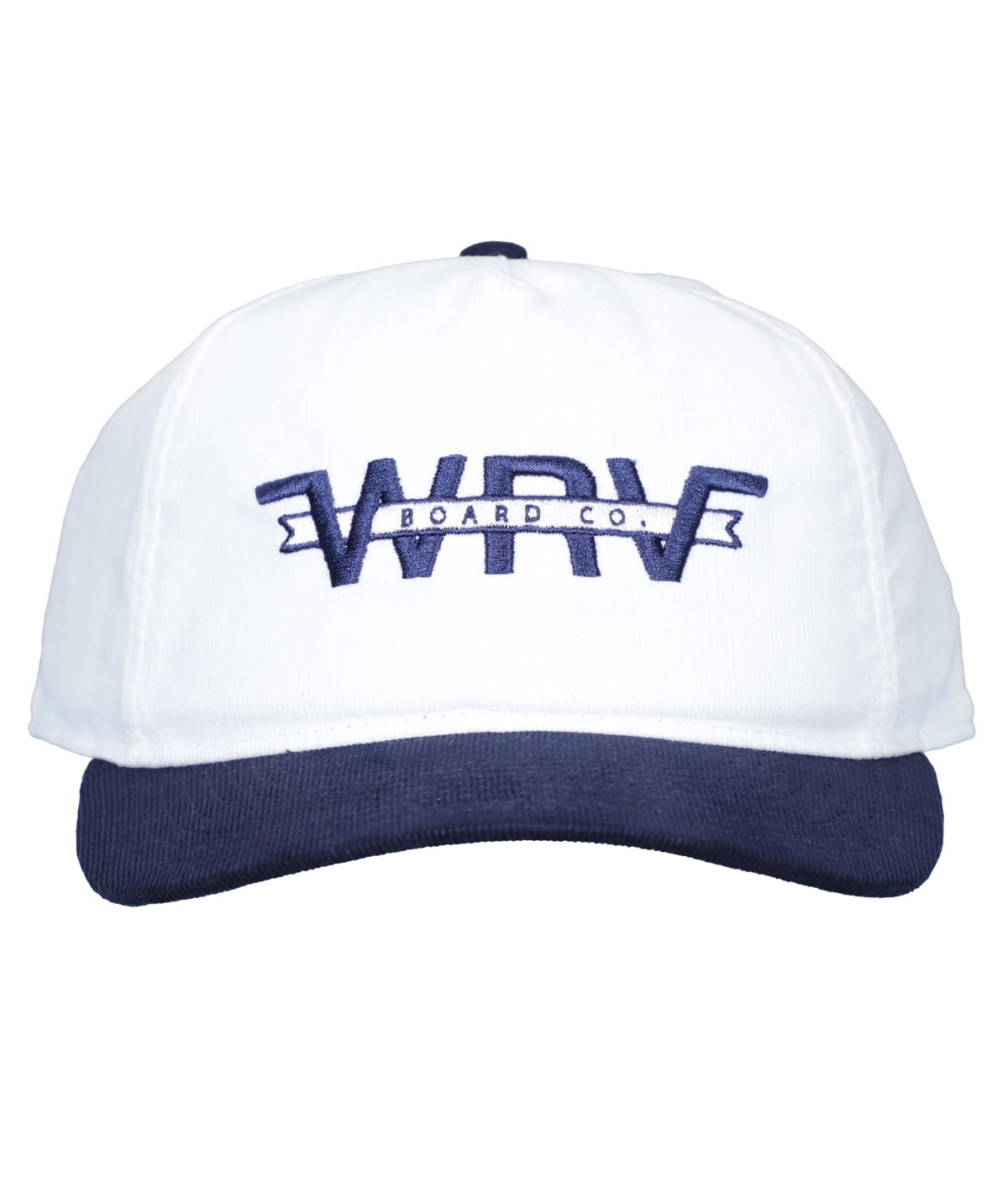 • Navy/white 5-panel snapback corduroy hat