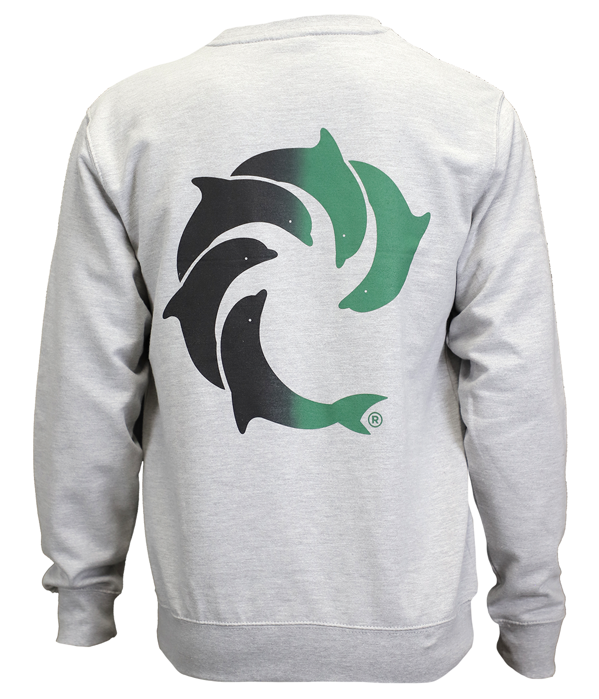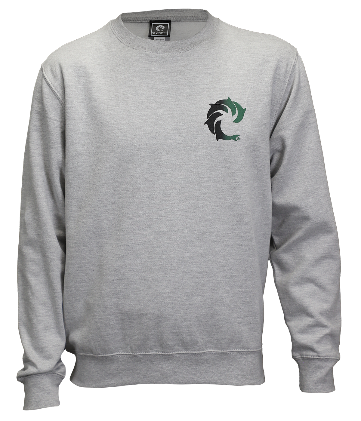 • Heather grey crewneck sweatshirt with black/emerald green solid smear