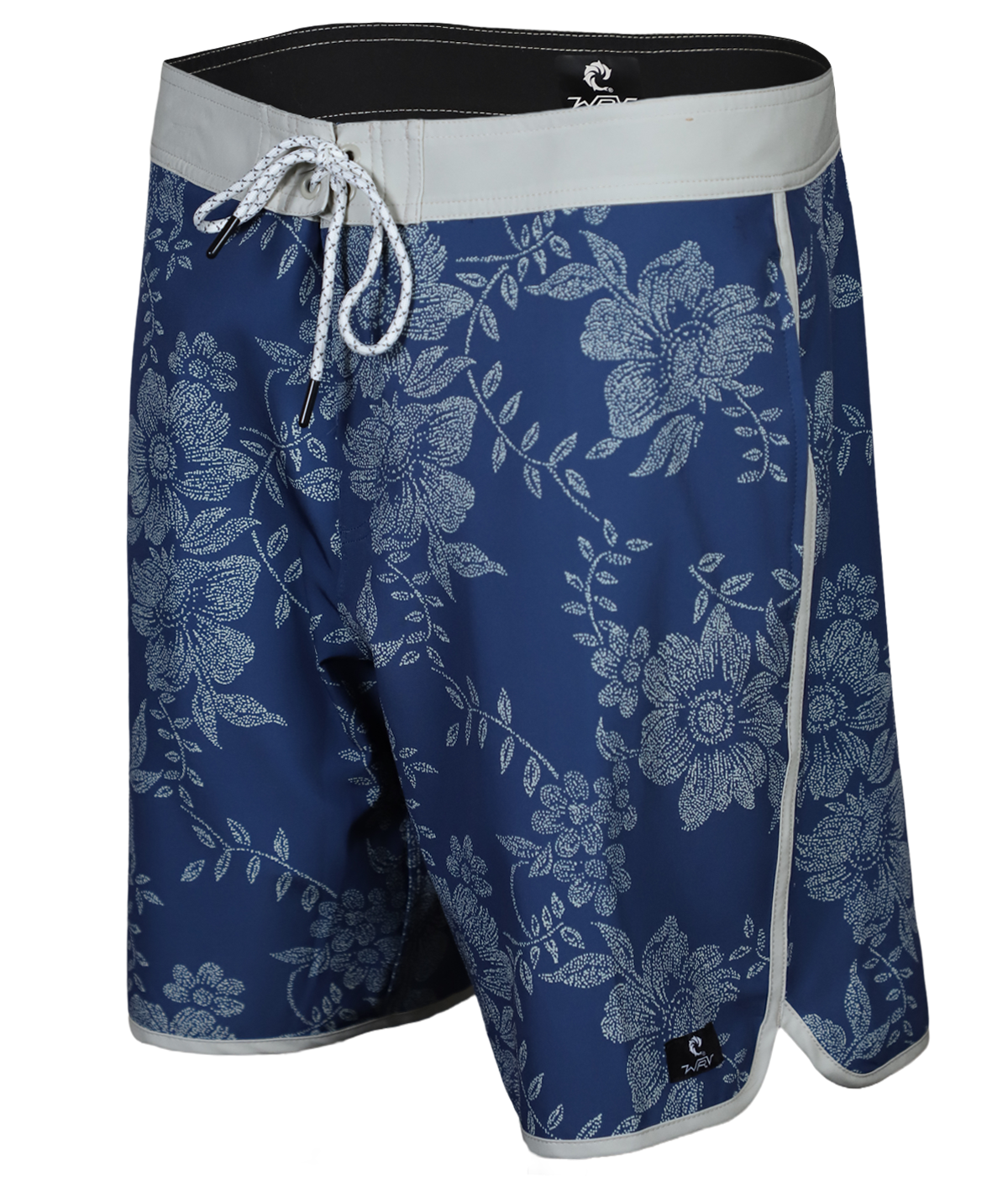 • Blue with floral print boardshorts