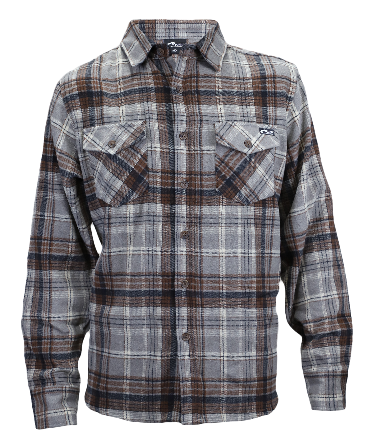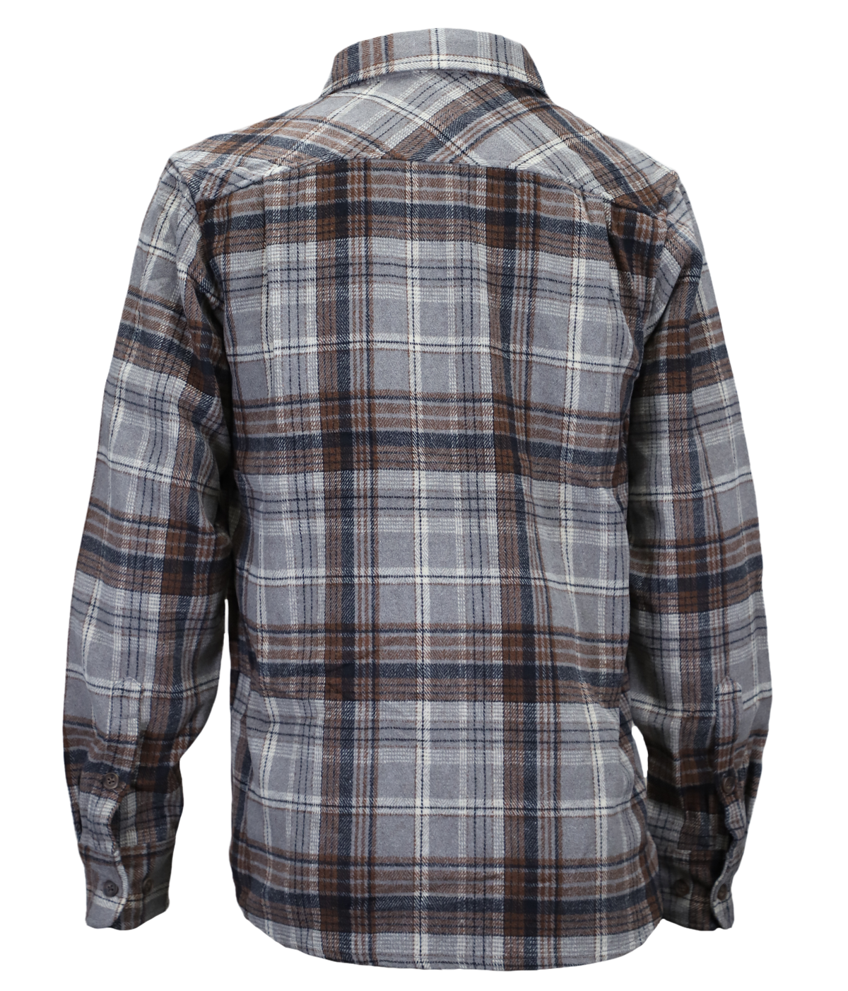 • Brown/grey flannel button up shirt