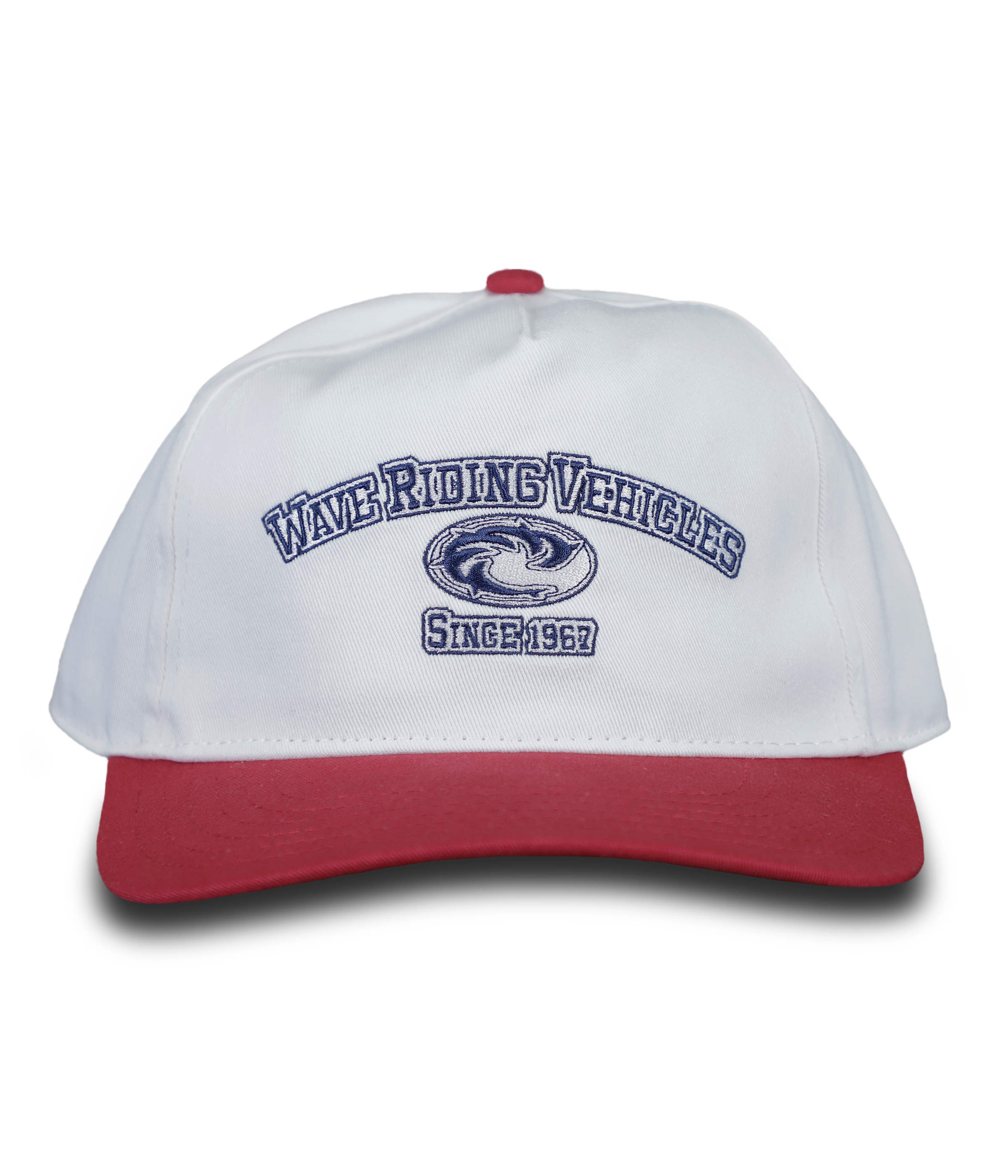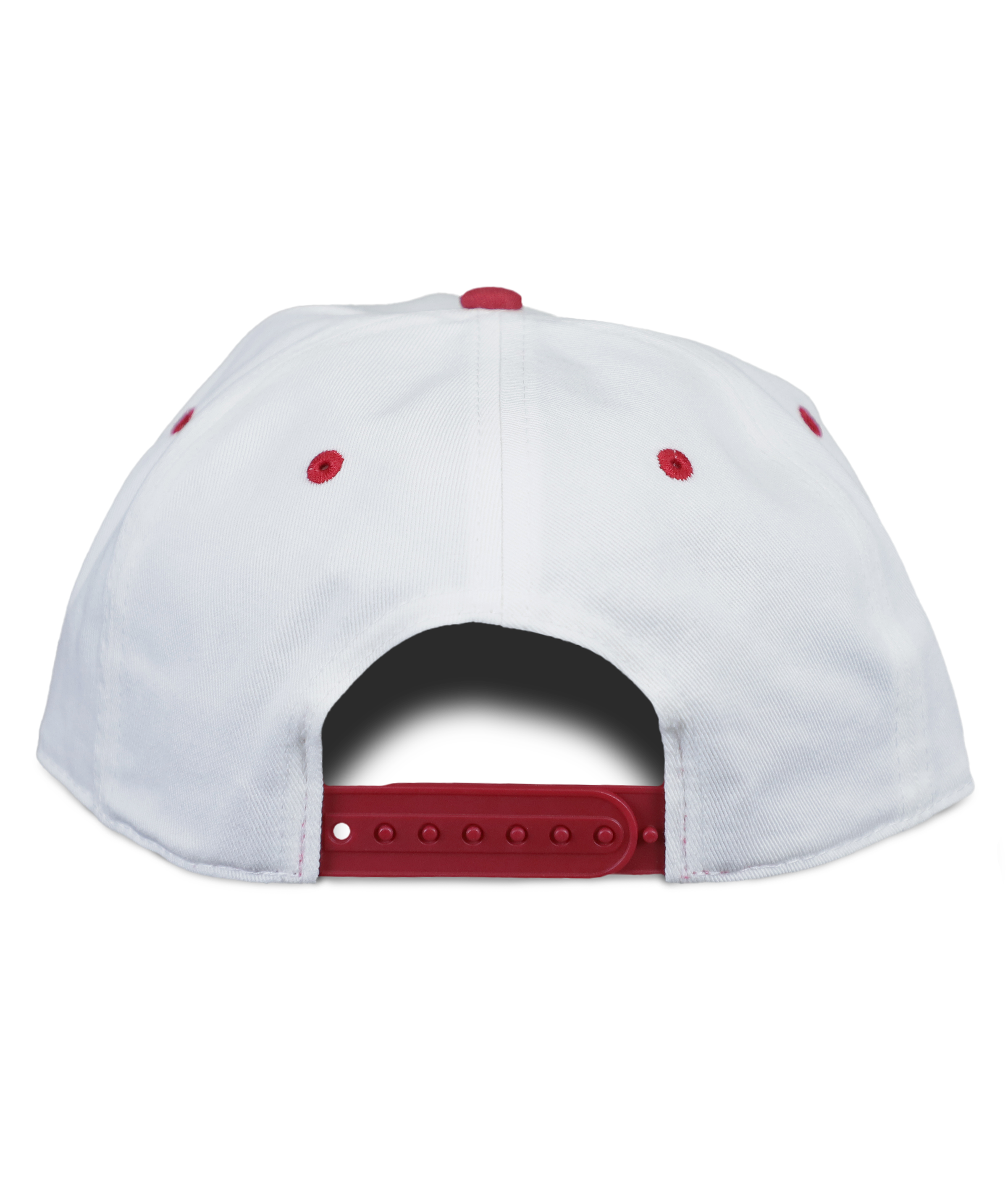• Mid-structured white/red snapback hat